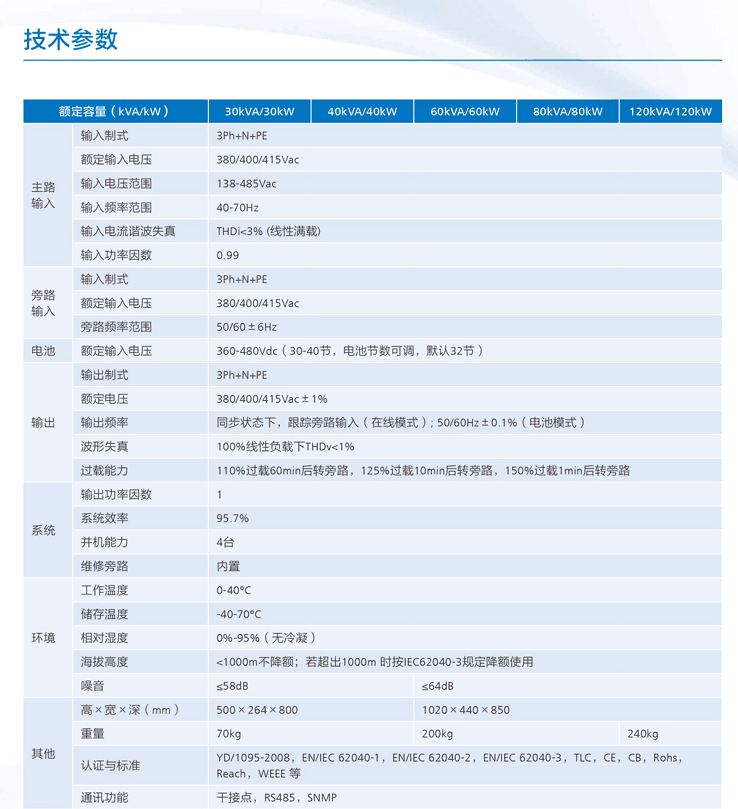 UPS5000-A系列主要应用于中大型数据中心、调度中心、控制中心、管理中心等关键供电场景,为重要负载提供额定电压为380/400/415V的交流不间断供电保护。可覆盖客户30-800kVA的供电保障需求,具有可靠性高、效率高、功率密度高等优势;