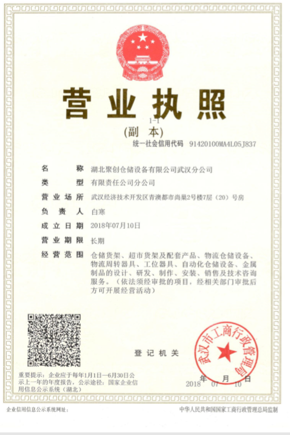 湖北聚创仓储设备有限公司武汉分公司