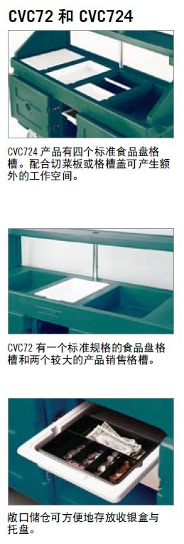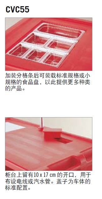 CVC72台面格槽容纳:中央格槽,1个GN1/1盘,2个外部格槽尺寸:56x39x15cm