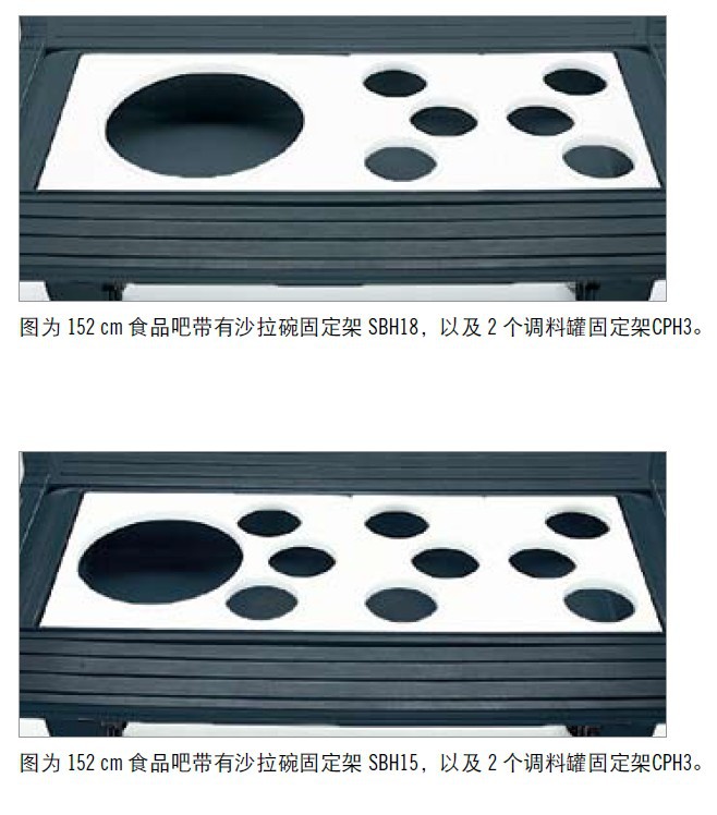 适于容纳小吃和冷饮。自助餐吧带有卫生罩,可用于单侧自助餐台。
