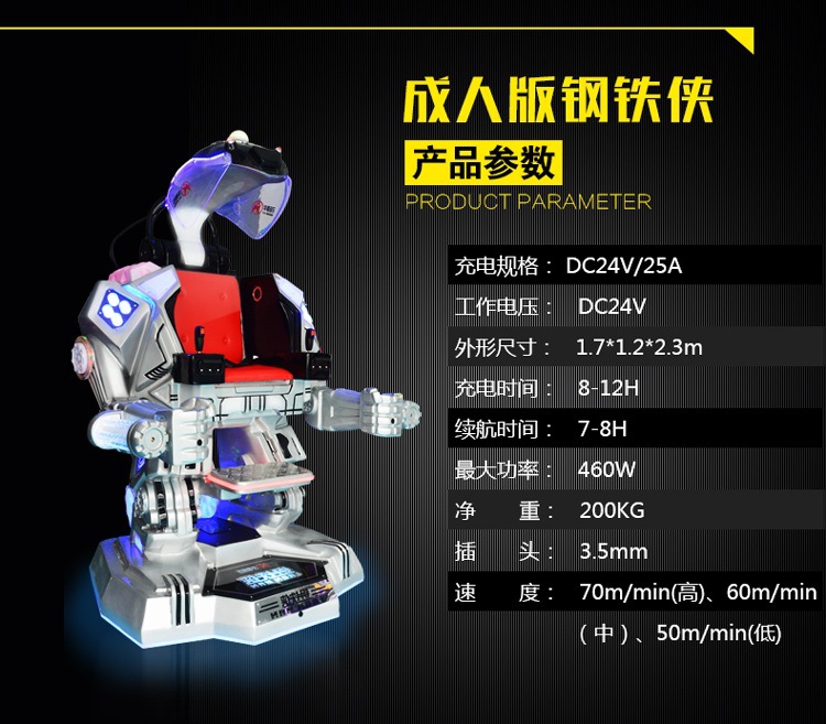 (8)机器人高度2.3米,坐上去使游玩者感到刺激,紧张感。