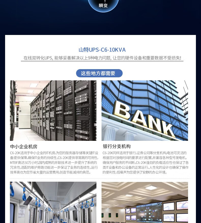 商品名称:山特(SANTAK) 山特C6K ups不间断电源在线式稳压6KVA/5.4KW 液晶屏 全国联保