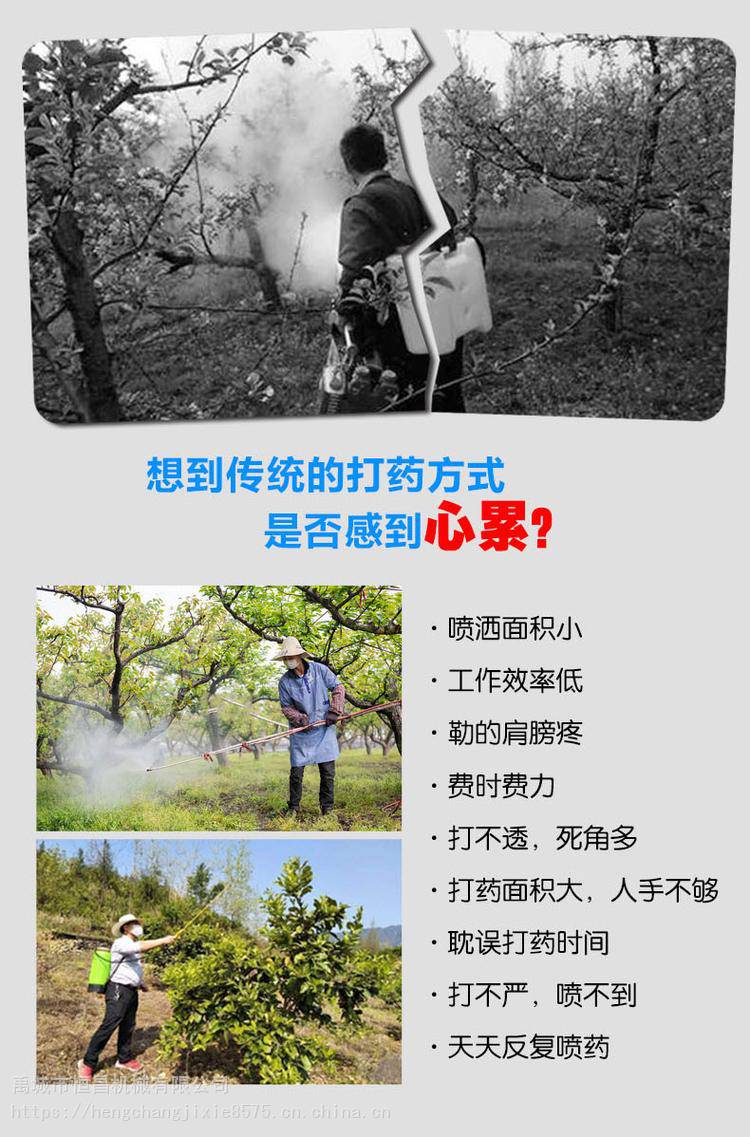 设计为扇面形工作,在高压气流的推动下,形成240-270度扇形展开的持续不断的雾化工作带,拓宽了药液辐射面,确保果园喷药后不留死角,每小时喷洒面积可达5亩以上,作业效率是普通打药机械的8倍以上。