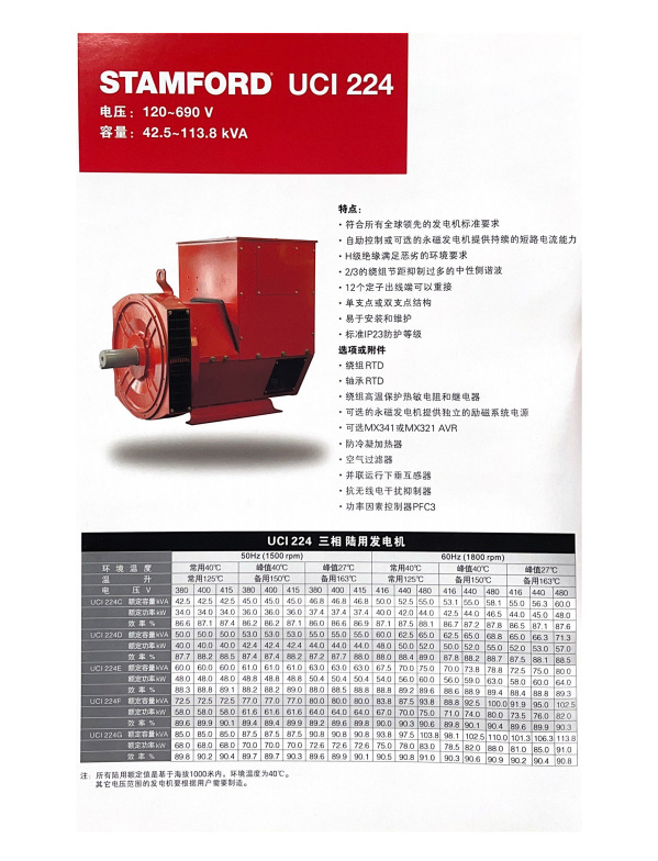 UCI224C14斯坦福发电机34kw康明斯发电机42.5kva