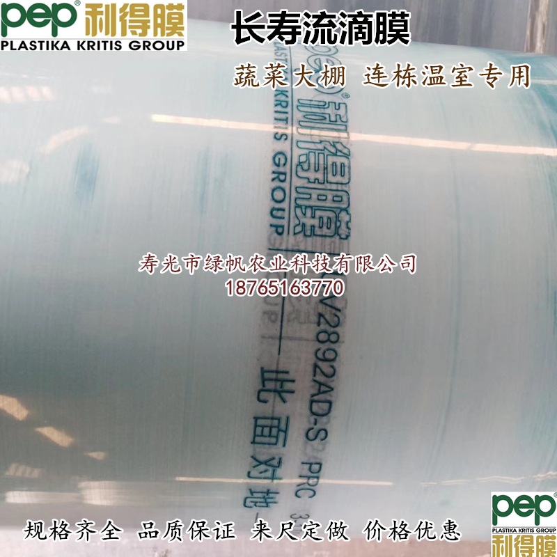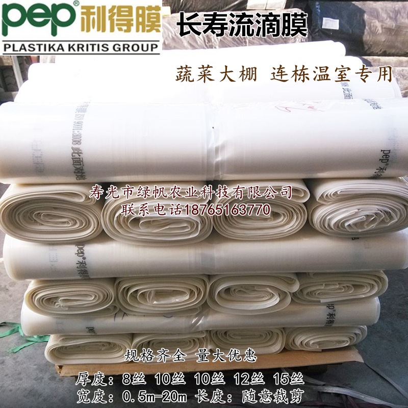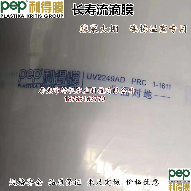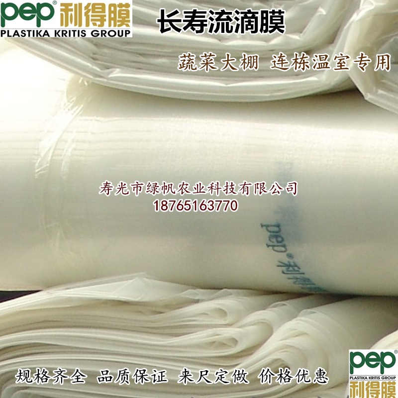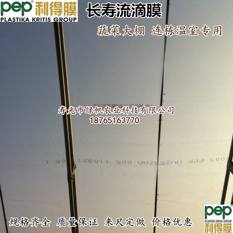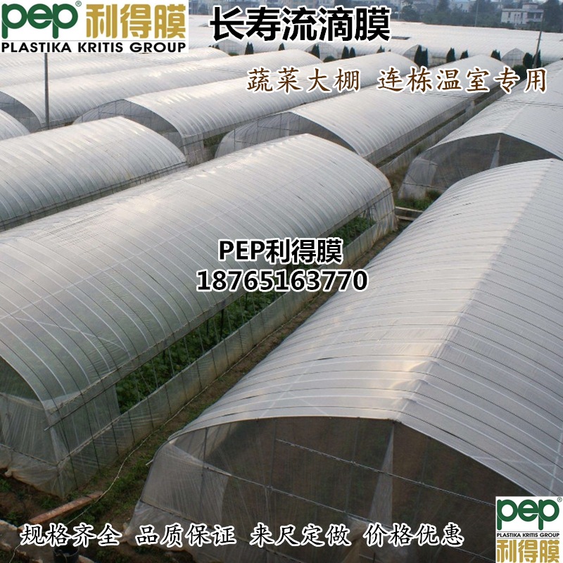4、防流滴:由于温差及水份蒸发的作用,膜表面很容易形成水滴,水滴凝结在膜上对作物的成长有负面的作用,因为水滴会降低膜的透光率,并容易引起病虫害的生成。 能有较好的收成。作物的成长较快。提升作物的质量。较少的病虫害。减少农药的使用。 ※ 在通风良好、有加温设备的温室里,流滴效果会更显著,有效时间也会更长pep利得膜所提供的防流滴效果最长可达4~18个月,但会因不同地区、不同气候条件、不同的温室型式而有所不同。