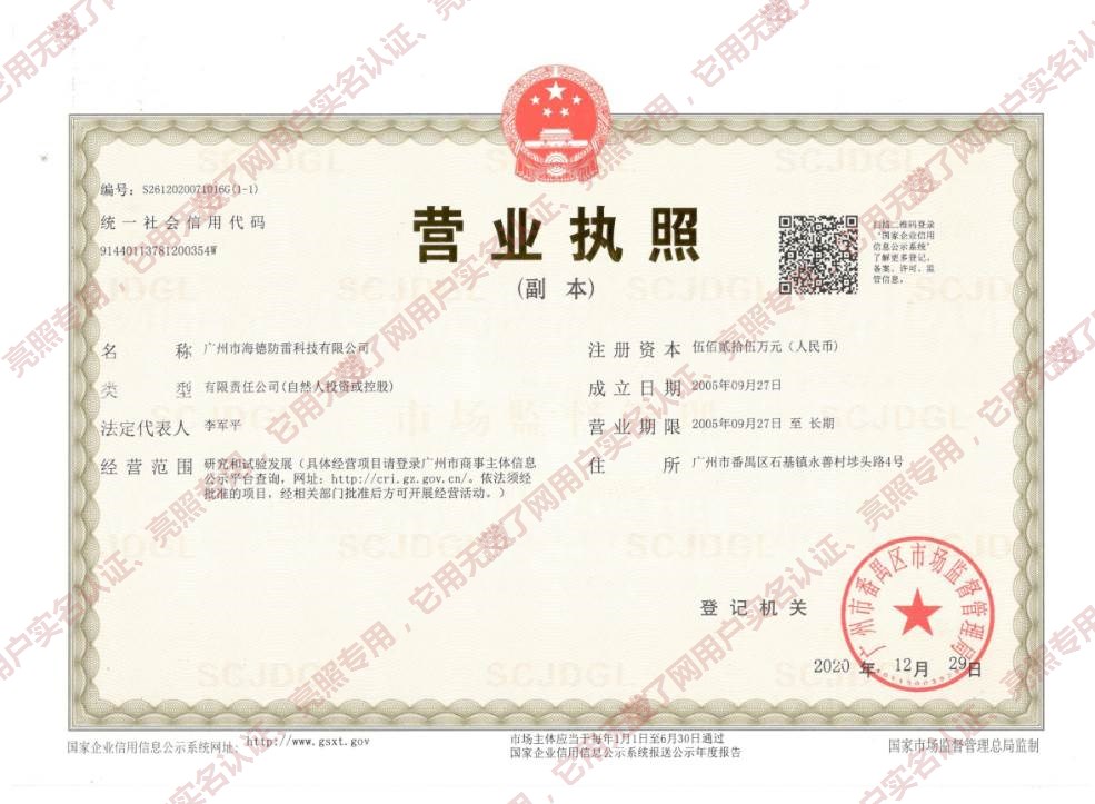 地址:广东广州市番禺区广州市海德防雷科技有限公司