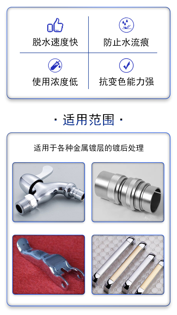 "冷封闭"技术,在常温(15-35℃)条件下实现5-8秒快速成膜,较传统热封闭工艺节能60%,适用于镀锌/镍/铬/合金等多材质体系。