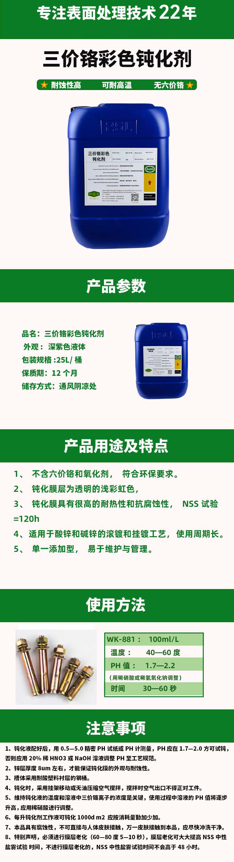 三价铬彩色钝化剂的优势卖点