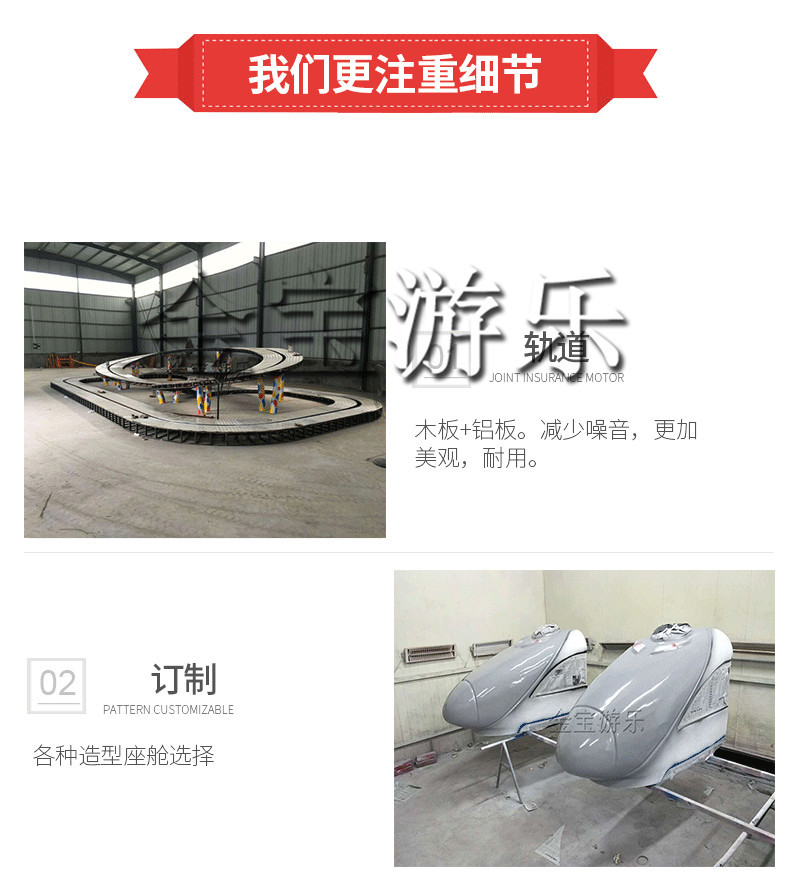 郑州金宝游乐设备是有限公司生产新型、中小型儿童游乐设备,规划 设计开发、生产制造的生产厂家,我们不断吸取国外玩具的精华,结合国内玩具的市场设计生产新型系列:霹雳转盘、霹雳摇滚、风筝飞行、海洋魔盘、冲浪者、海洋系列 、旋转系列、轨道系列、自控系列、充气城堡、小型系列等百余种游乐设备高科技新型产品。可根据用户要求进行各种游乐设备的定制,也可根据实际场地为客户进行整体设计、策划、订做、安装、售后、一系列服务。