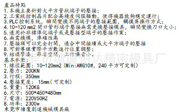 | 适用线径 | 10-120mm2 | 电机功率 | 2500w |