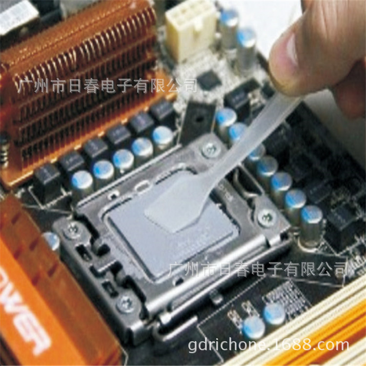 用作电子元器件的热传递介质;CPU与散热器填隙及热传导;大功率三极管与铝、铜基材接触的逢隙处的填充;降低各类发热元件的工作温度.