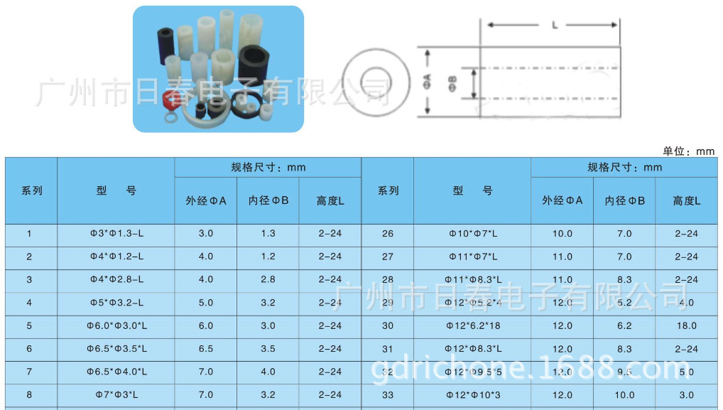 常规规格:外径有 4mm 、Φ 5mm、Φ 7mm、Φ 8mm、Φ9.5mm、Φ10mm ,高度2mm-24mm,另有一些特殊规格未列出。
