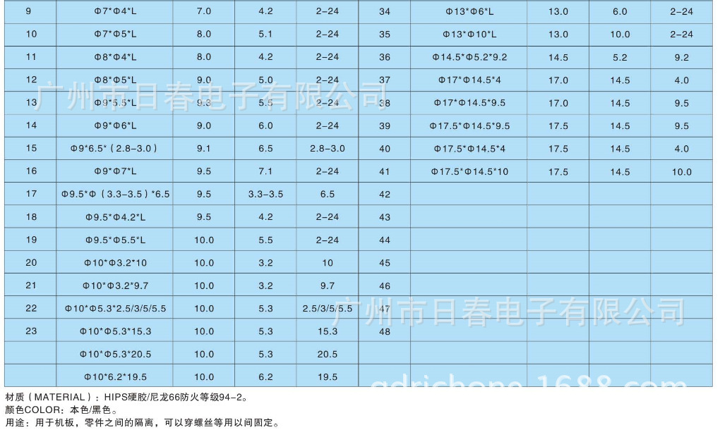 材质:UL合格之NYLONG66(本色),防火等级94V-2.