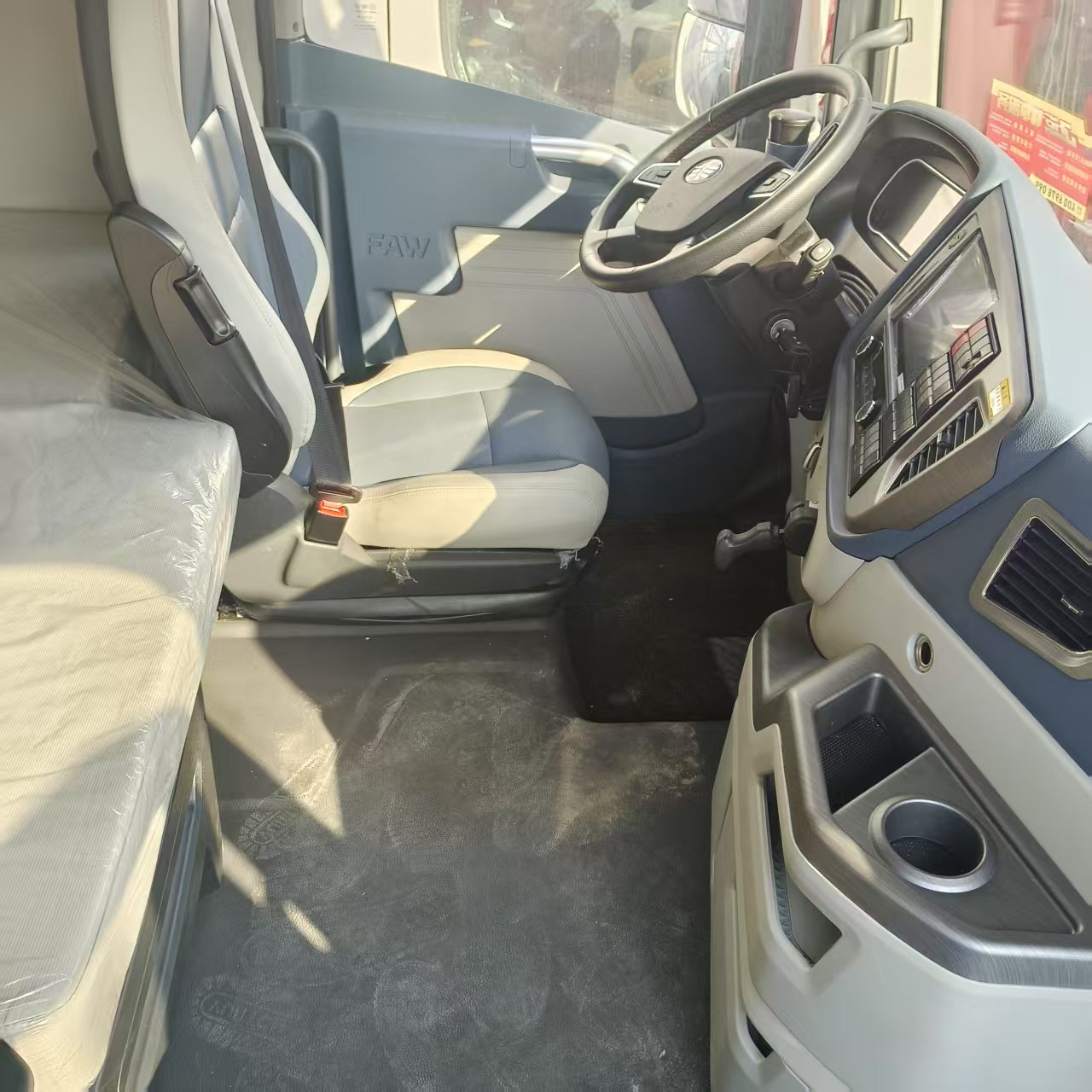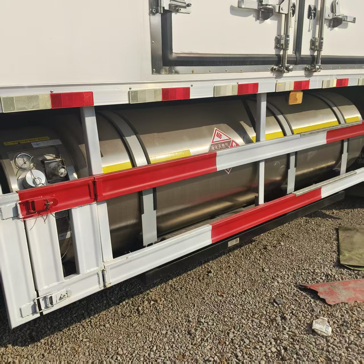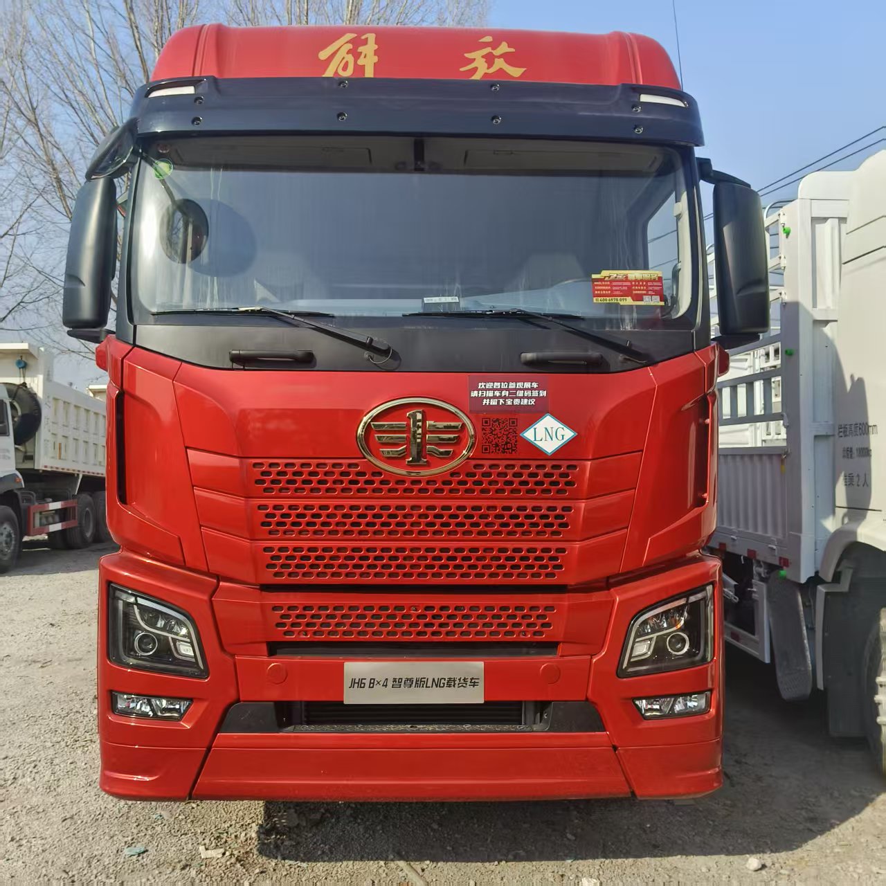 LNG解放冷藏车JH6平地板大排半高顶驾驶室(四点空气悬置/空调/电动举升/电动门窗/电动电加热后视镜);驱动8×4;发动机锡柴CA6SM4-53E61N;变速箱陕齿F16JZ26A(自动挡全铝壳)+液力缓速器;后桥∮435;速比3.417;轴距4500;轮胎12R22.5-18PR(前轴铝合金钢圈/国际优秀品牌轮胎);其他:智尊版2.0,视频包2.0(10寸屏+四方位影像),内外饰色彩优化,彩色液晶仪表,视频记录仪,疲劳监测,2000真皮多功能方向盘,格拉默通风座椅,升级卧铺,220V电源,LED大灯,自动大灯控制机构,TRW方向机,带转向应急,板簧2/2/2+-/2+-,4气囊,带国产ECAS,LNG-750L*2个,DQ,135Ah锂电池,带静电拖地带,进口阀,全车康迈轮端,机箱桥长换油,10/20/15万公里,PKC线束,限速89KM/H,EBS,