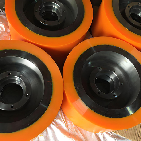 聚氨酯包胶轮体:密度低于橡胶(1.1-1.2g/cm3),轮重减轻30%,降低电机负载,延长电池续航20%,同时提升耐磨性(寿命是橡胶轮的3-5倍)。