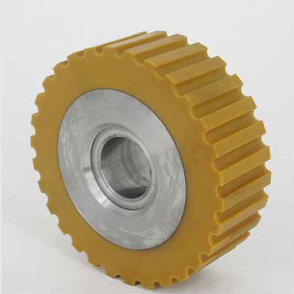 耐磨性:聚氨酯包胶轮在高频启停(如每日启停超2000次)场景下,磨损率≤0.05mm/月,寿命达18个月以上,较橡胶轮提升3倍。