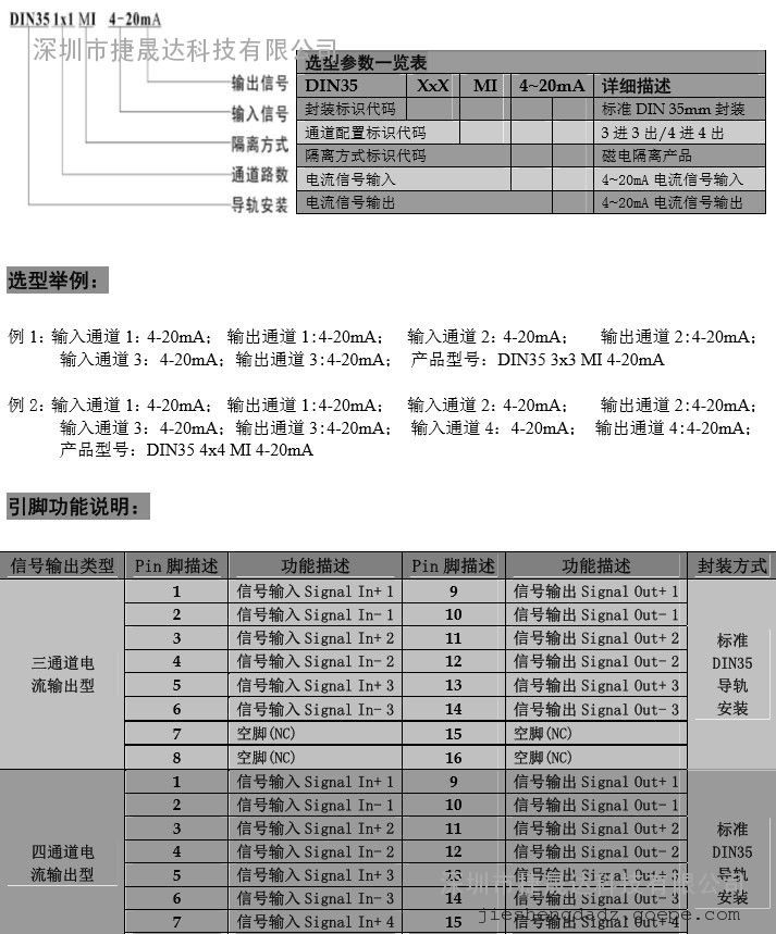 无源隔离变送器4-20mA隔离器三进三出/四进四出隔离器 --深圳捷晟达科技专利产品,该信号隔离器有PCB板上焊接和DIN35导轨安装,导轨安装的可以实现模拟量信号一进一出,二进二出,三进三出,四进四出等功能,使用非常方便,接线即可, 大量供应,欢迎新老客户来电咨询 。