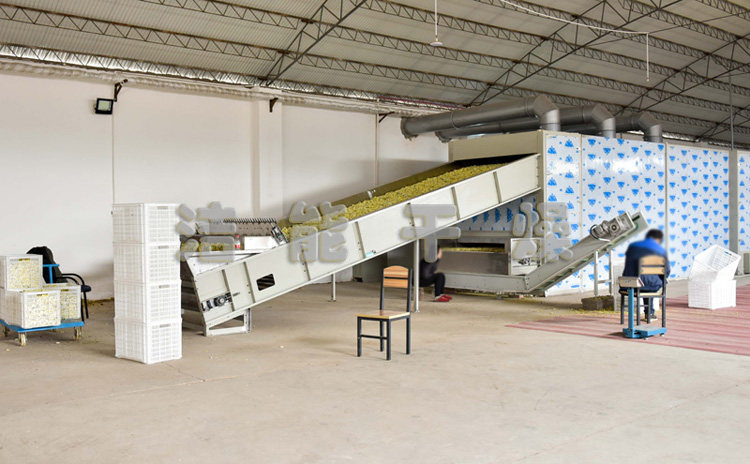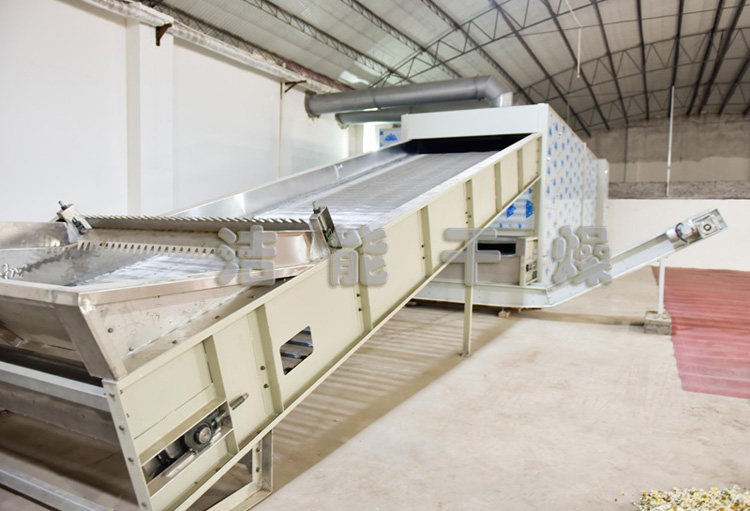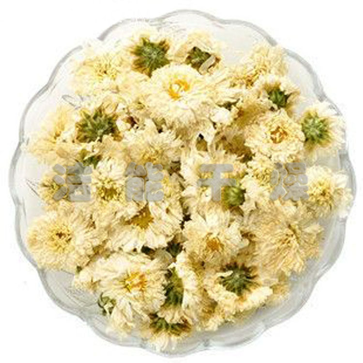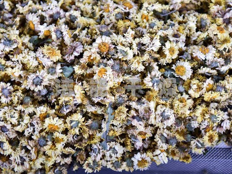 菊花烘干机是按菊花加工干燥曲线研制的热风烘干设备,在烘室内纵横方向设置多个温区,通过对烘室内温度的检测、控制,调节菊花内心部分的水分蒸发保留通道,从而缩短干燥周期,保全菊花花型,实现菊花内外含水的一致性和内外品质,达到高效的作业结果。