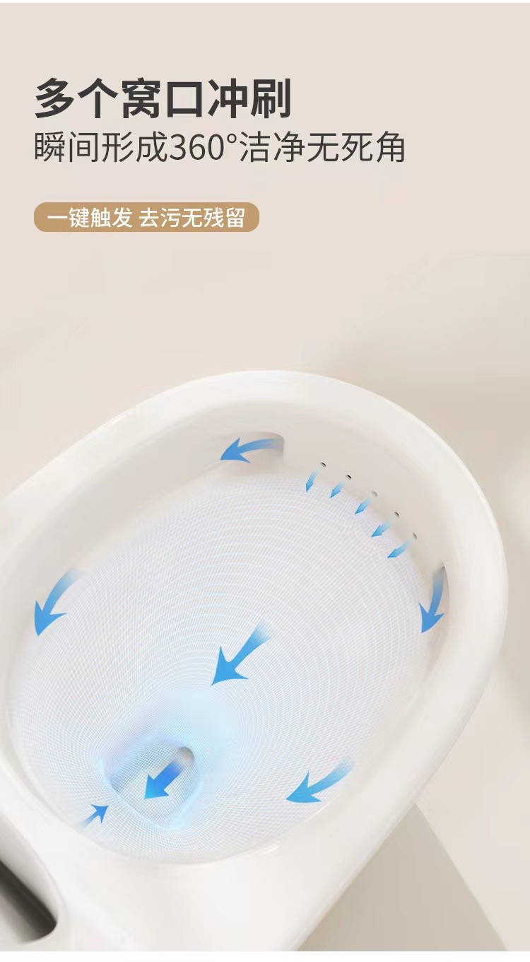 无唇设计:传统马桶的冲刷通常依赖“唇缘”(马桶边缘下方的出水孔),而无唇冲刷技术可能采用隐藏式出水口或底部直冲设计,减少清洁死角,降低污渍残留。