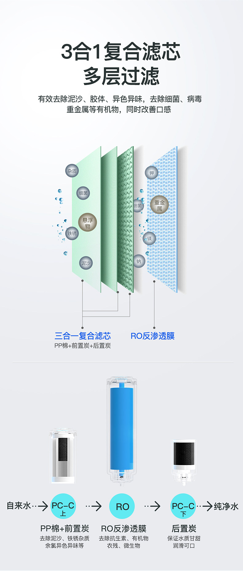 滤芯: 活性炭 活性炭+超滤 PPF棉 中空纤维 RO膜