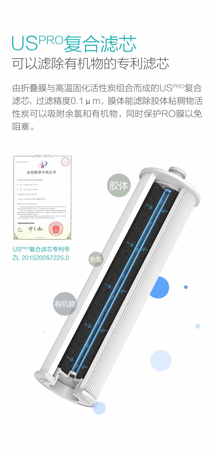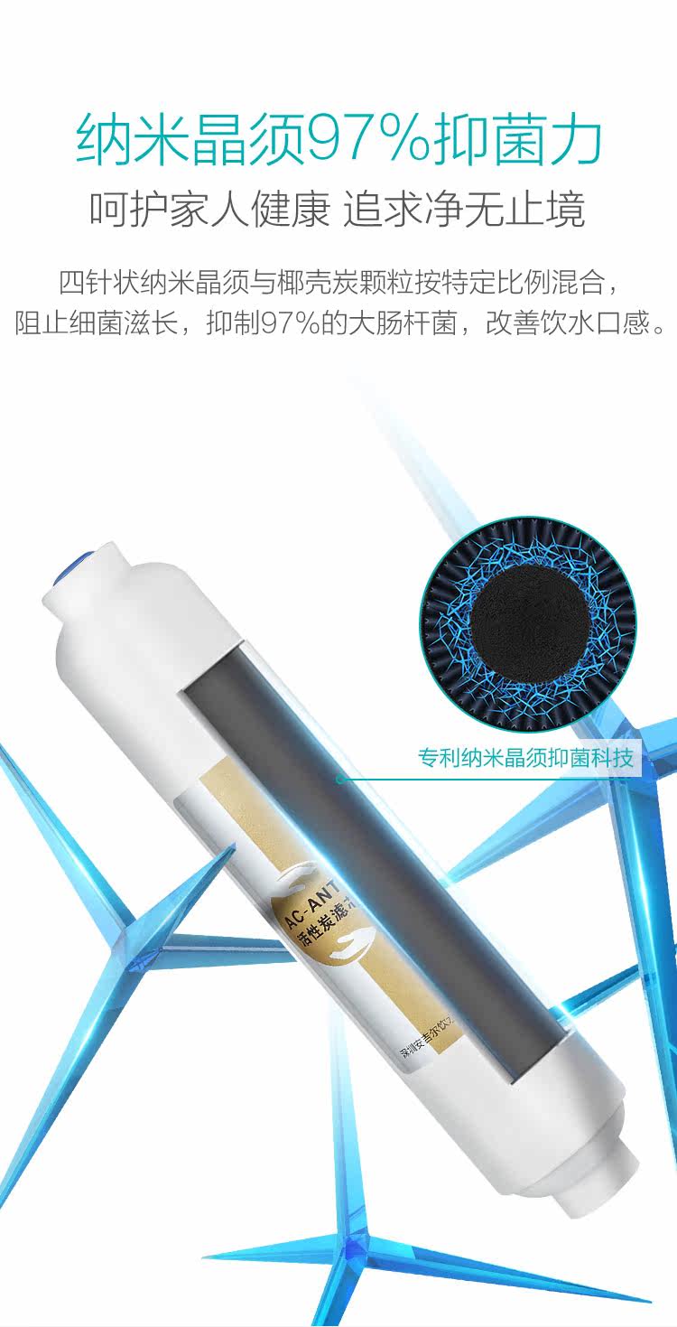 滤芯: 反渗透 柔顺折叠金属膜 超滤 纳米抑菌活性炭 US复合滤芯