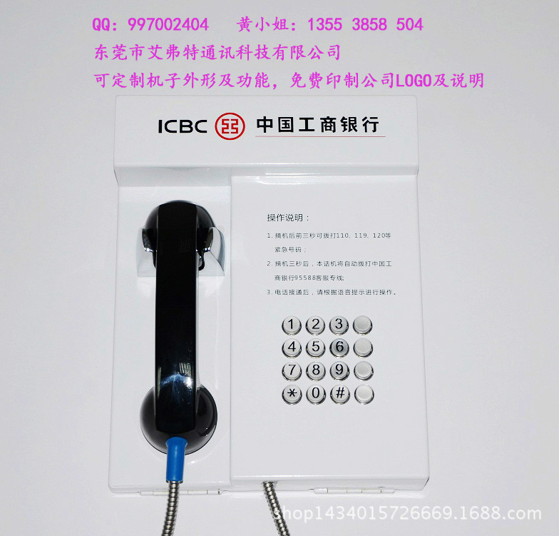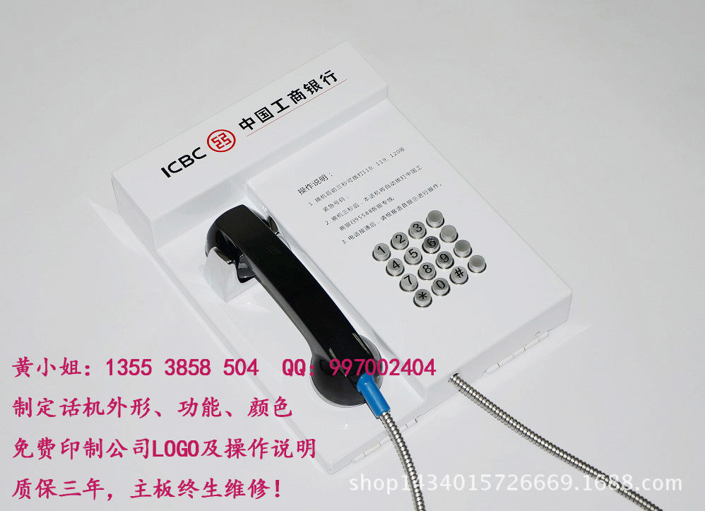 1.用于银行柜员机拨打银行专线服务、ATM旁、自助银行;