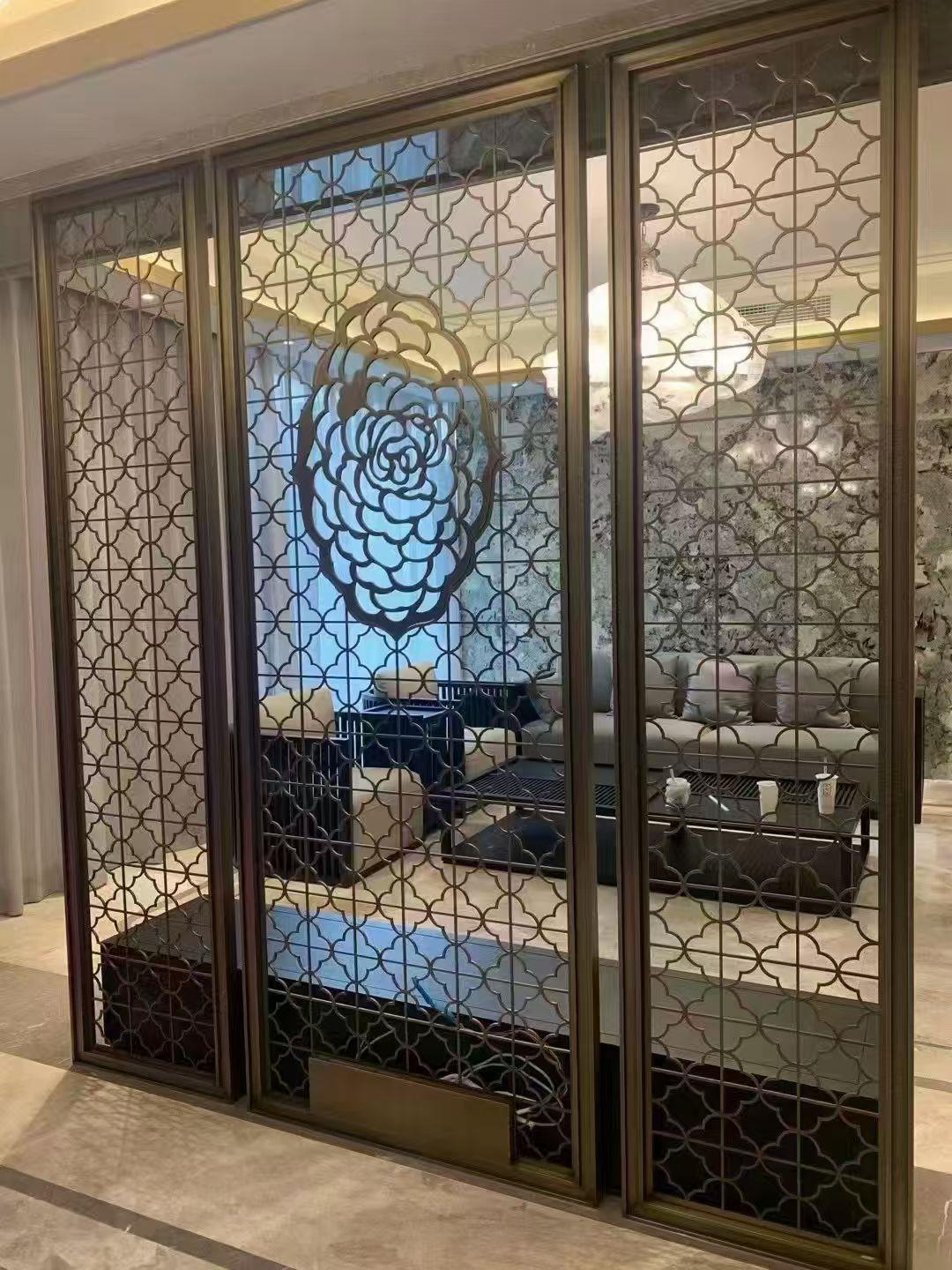 不锈钢屏风酒柜定制,专注家居与商业空间定制,采用 304 不锈钢材质,激光镂空、无缝焊接工艺,兼具隔断功能与储酒展示效果,量身打造更贴合户型。