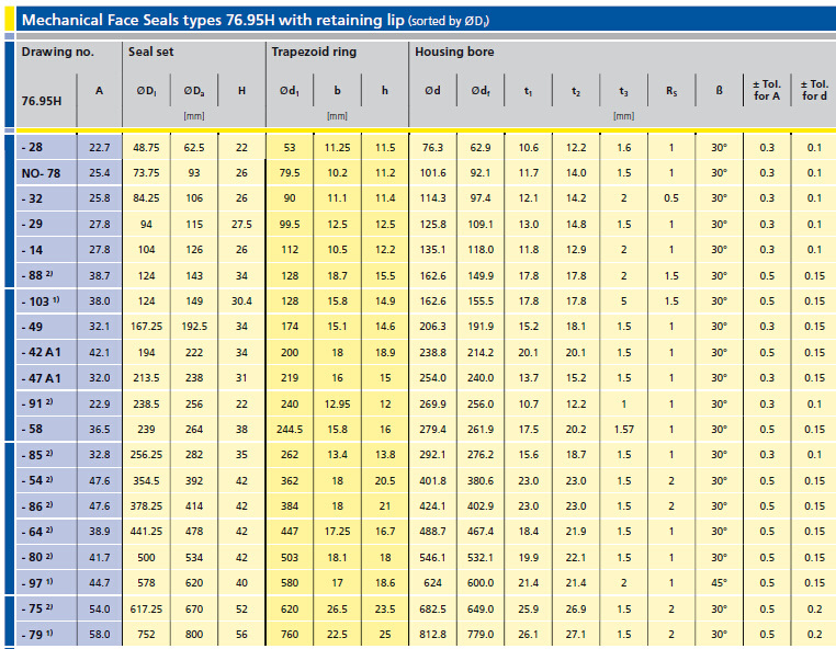 76.95型相对于76.90H和76.97H型,需要的安装空间较小,对应沟槽的形状更易于加工,但是,该系列的密封所对应的沟槽具有更高的加工精度要求。由于梯型橡胶圈与O型橡胶圈的压缩形变不同,必须严格安照所规定的压缩尺寸和间隙进行安装。如果间隙过小,有可能导致密封面冷焊,如果间隙过大,则有可能导致漏油。同时,加工尺寸的偏差也会影响橡胶圈的弹性储备,缩短使用寿命。