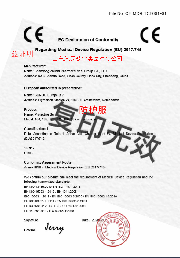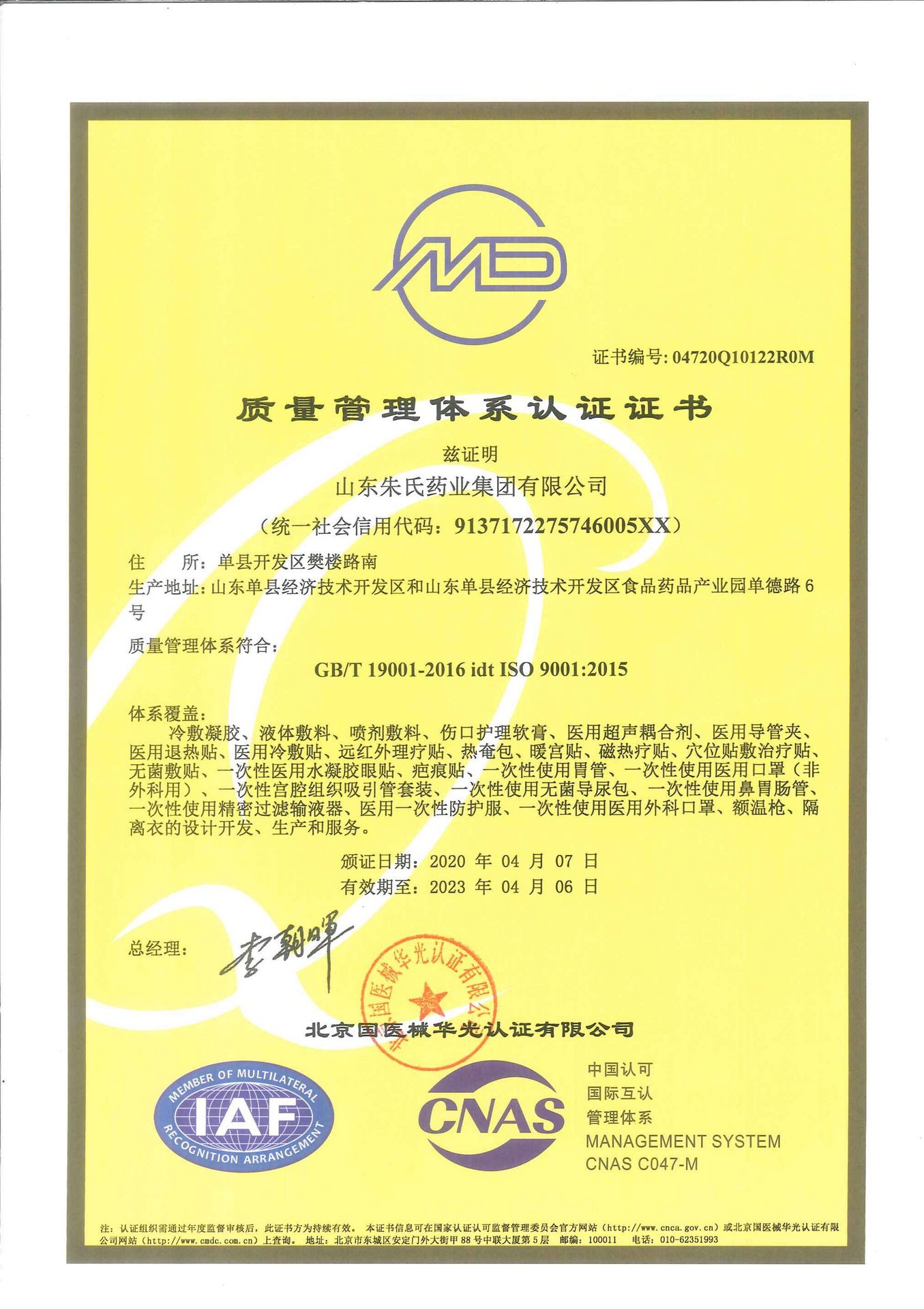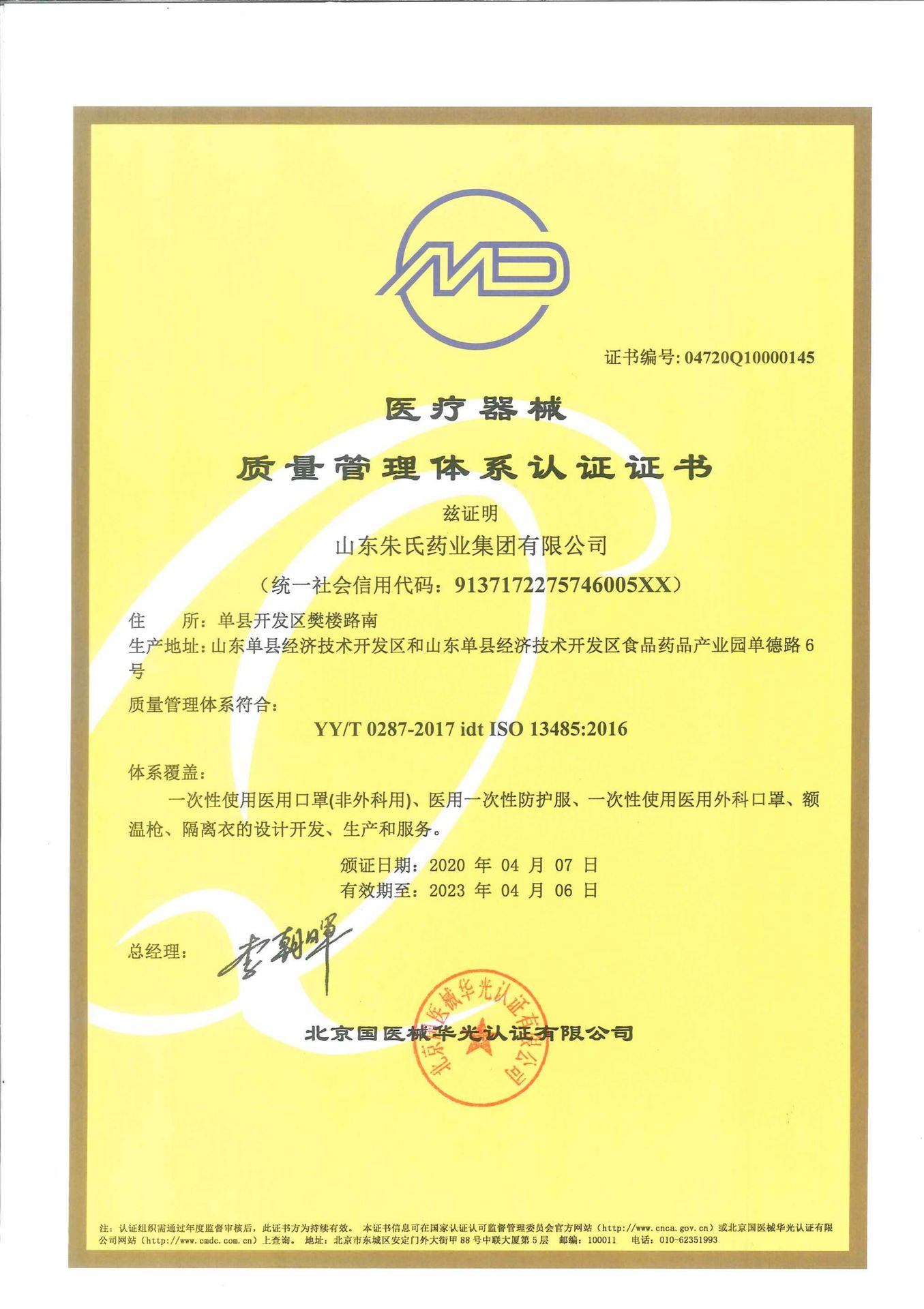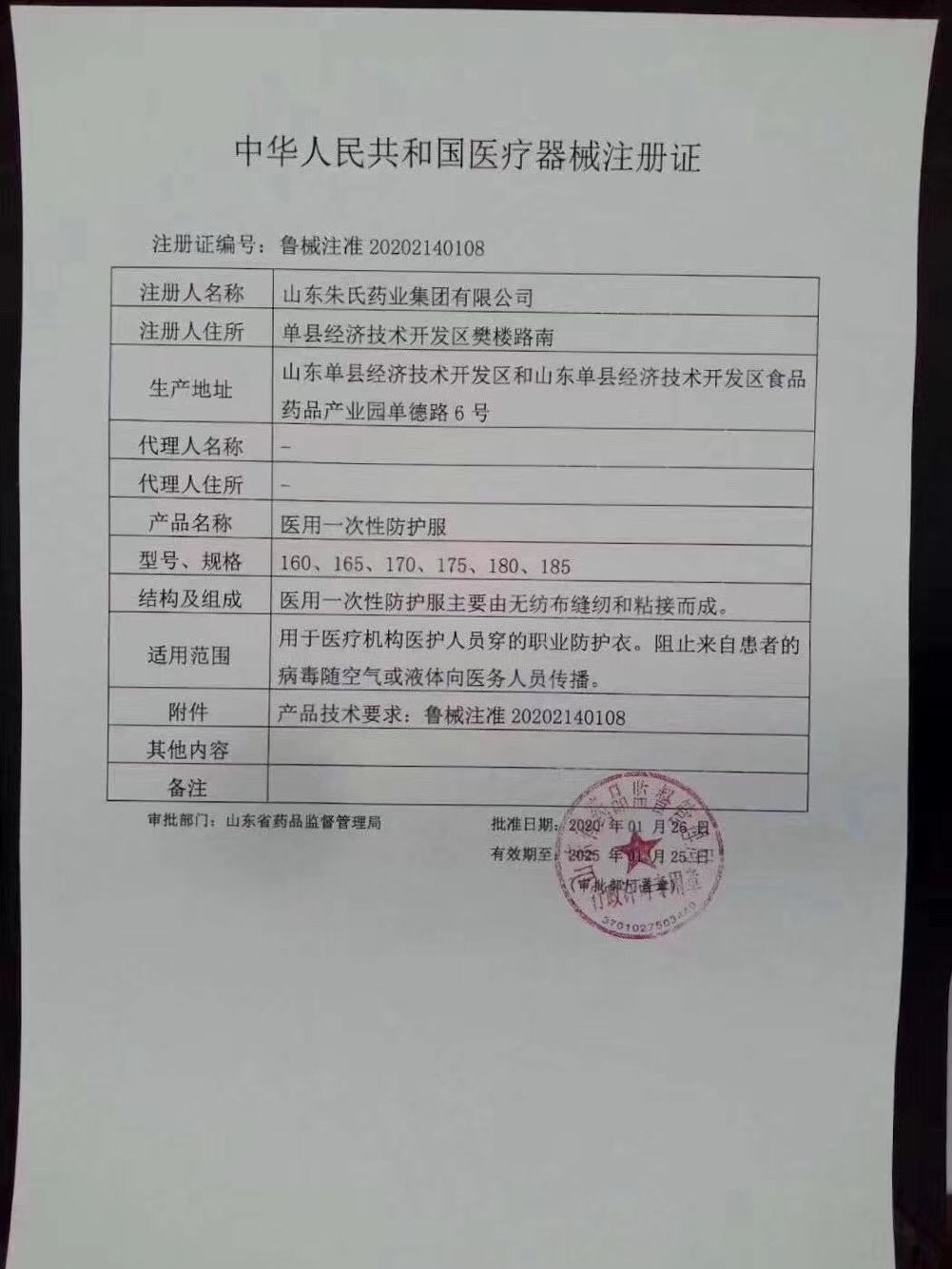 山东朱氏药业集团有限公司致力于防护物资的生产销售,