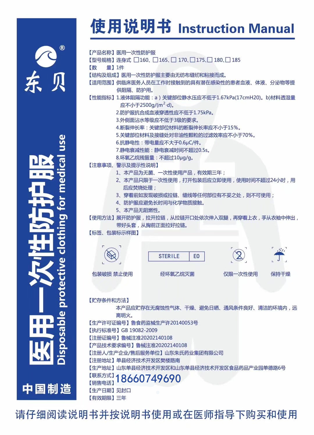 有 效 期:3年一次性医用防护服(已经环氧乙烷灭菌)