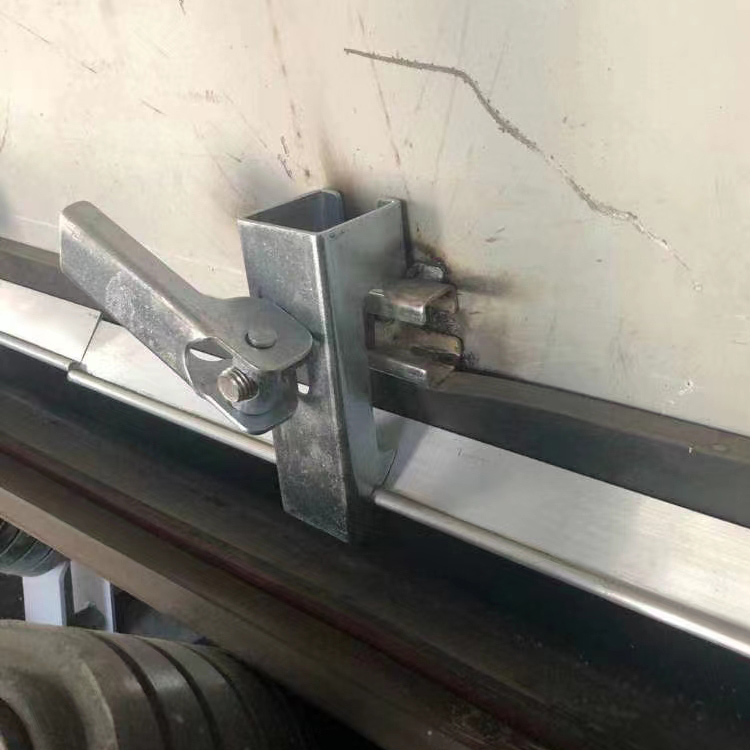 3、手动旋转压紧手柄,适当时向上(下)推到底,可对角铝施加足够的压力,保持裙板位置,且压紧手柄不会松动脱落。