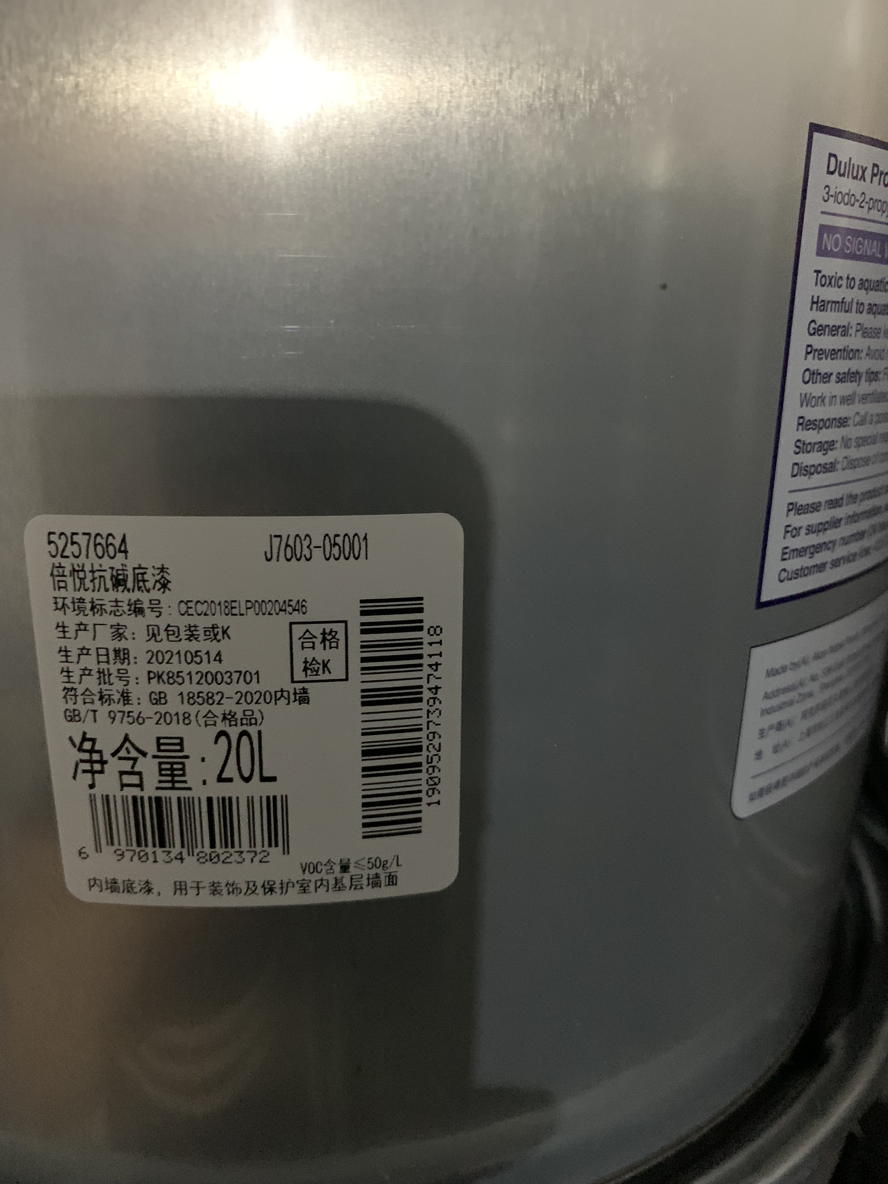 底漆:多乐士晴雨底漆 A931-65978或者多乐士油性封固底漆 A579-15054(1层)