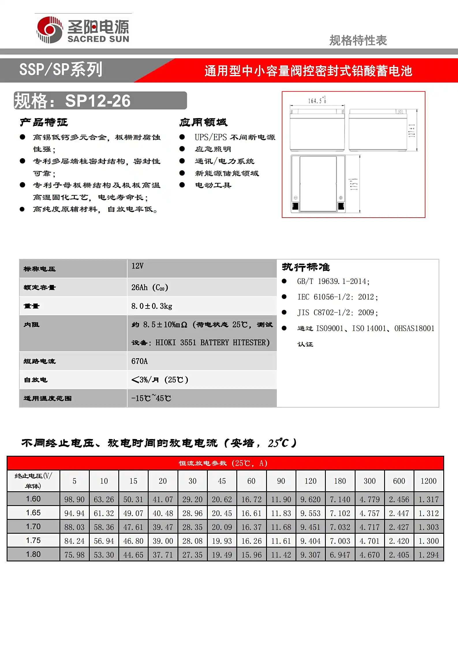 圣阳蓄电池SP12-200 12V200AH铅酸免维护 UPS电源配套