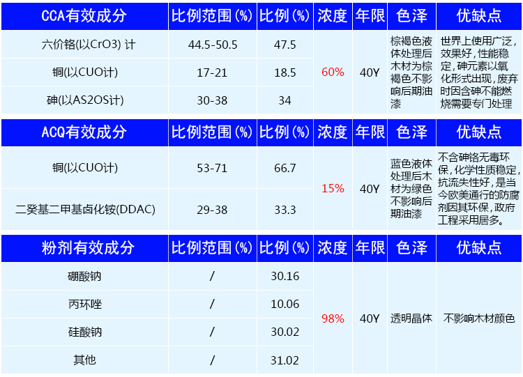 CCA木材防腐剂是世界上效果、应用广泛的水溶性防腐剂之一,它由铜、铬、砷的化合物组成,用CCA木材防腐剂处理的木材。