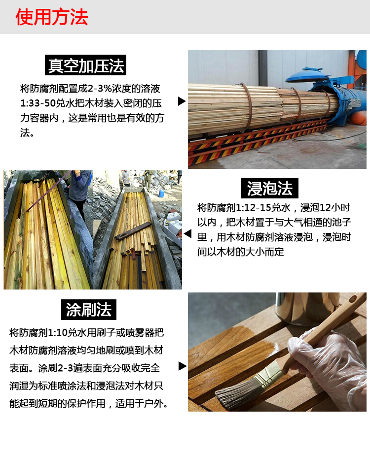 3、真空加压法:建议使用浓度为2%-3%调配进行真空加压处理。