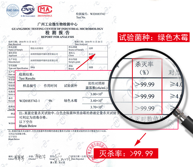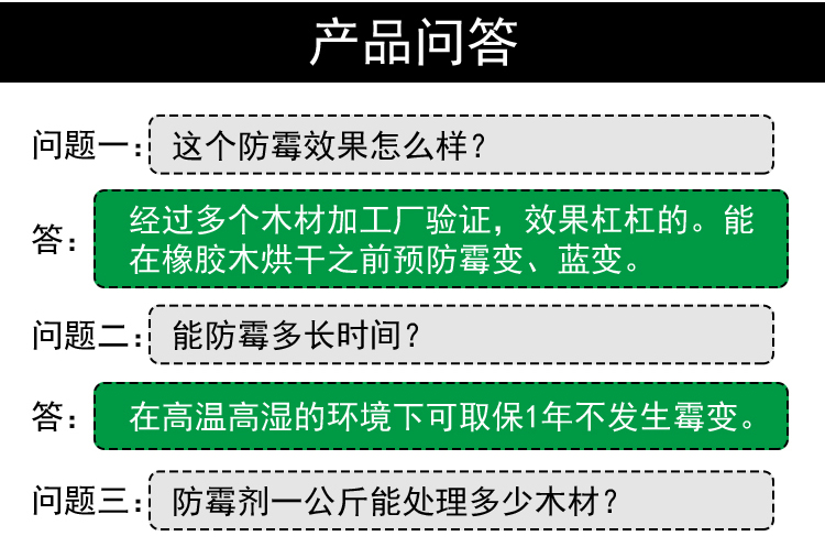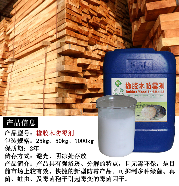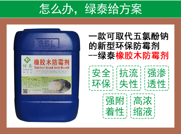 1.绿泰橡胶木防霉剂主要成分:烷基胺混合物(Ammoniacal Copper)、纳米银离子、MBT、活性酶制剂、Chlorothalonil CTL)、抗菌剂、促进剂、杀菌剂、助渗剂、表面活性剂等。(不含重金属、甲醛等有毒有害物质)