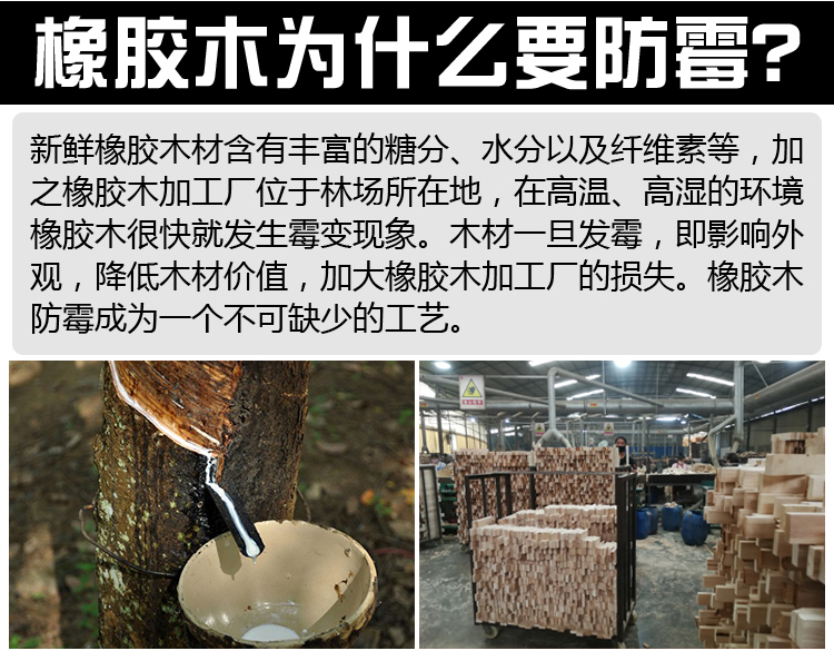 【适用范围】主要适用于橡胶木品种的新鲜原木、板材、半成品、成品的保存、运输、加工过程中的木材霉变,蓝变的预防处理.