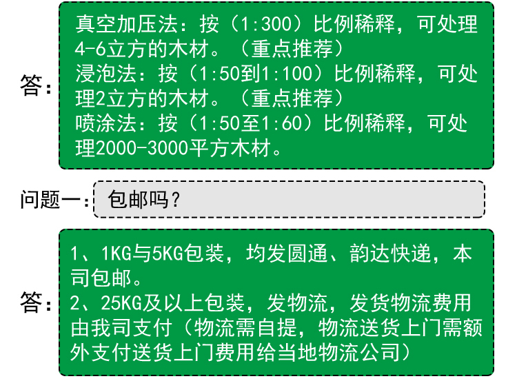 【使用方法】理论喷雾、涂刷、浸泡以及真空加压法均可,但处理效果和成本考量不建议使用喷雾、涂刷、浸泡的方式处理,建议使用真空高压法处理.