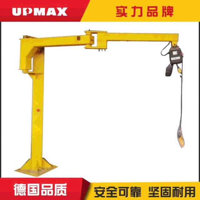 UPMAX昂玛悬臂吊是悬臂吊的一种,是指取物装置旋挂在臂端或旋挂在可沿旋臂运行的起重小车上,旋臂可回转,但不能俯仰的臂架型起重机。主要由立柱、