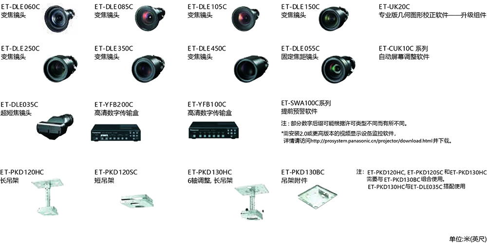 | 屏幕尺寸(对角线) | 1.27–15.24m (50–600英寸), 选用 ET-DLE055C 时, 1.27–5.08m (50–200英寸), 选用 ET-DLE035C 时, 2.54–8.89m (100–350英寸) | |