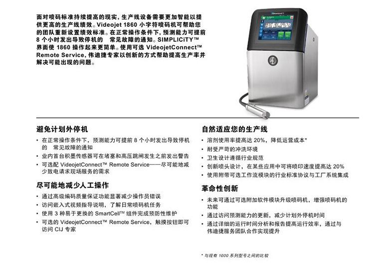 Smart CartridgeTM(智能墨盒)墨水和溶剂输送系统几乎可以消除喷溅,并确保使用正确的墨水和溶剂