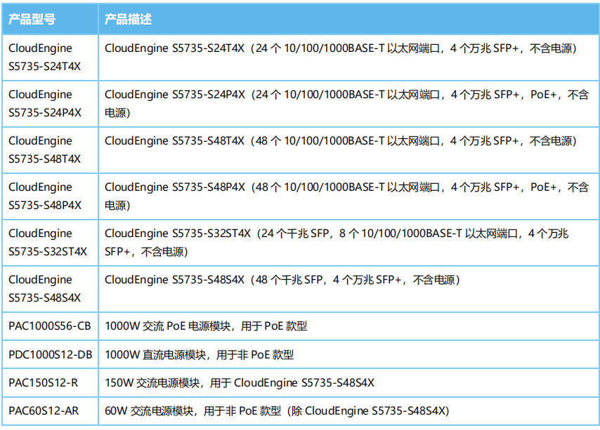 S5735-S24P4X S5735-S24P4X(24 个 10/100/1000BASE-T 以太网端口,4 个万兆 SFP+,PoE+,不含电源)