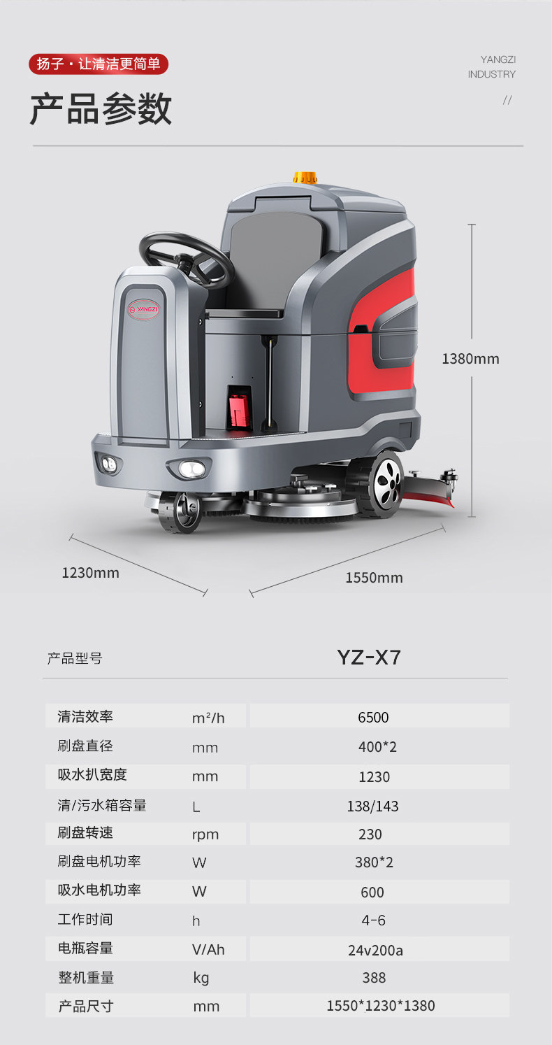 扬子X7驾驶式洗地机工业商用环卫扫地机仓库工厂清扫车