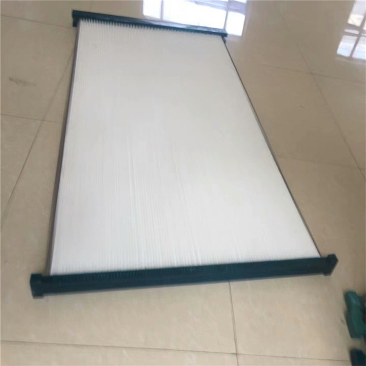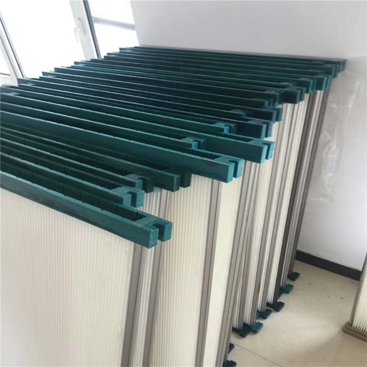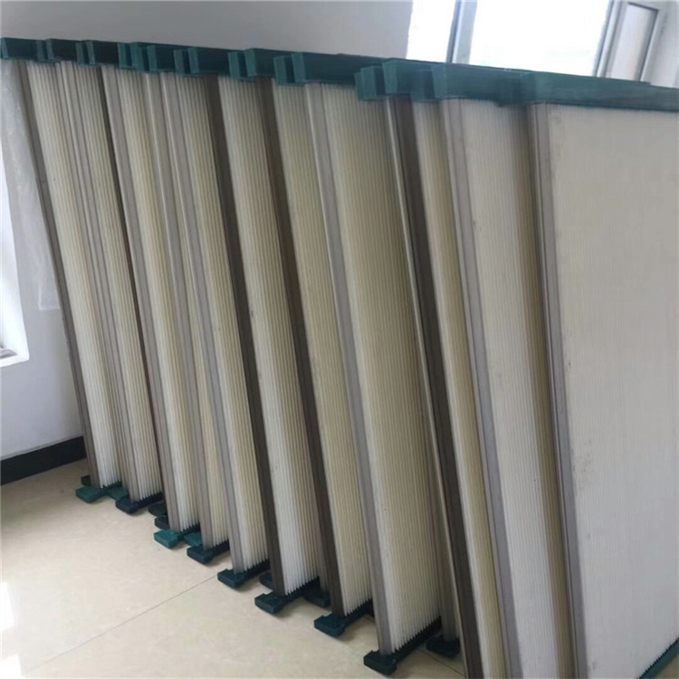 1.滤料选自国产、进口覆膜聚酯无纺布(可做防油、防水、防静电、阻燃处理)、聚酯长纤滤纸、玻璃纤维滤材等采用国际先进宽褶打折技术,间隙均匀.