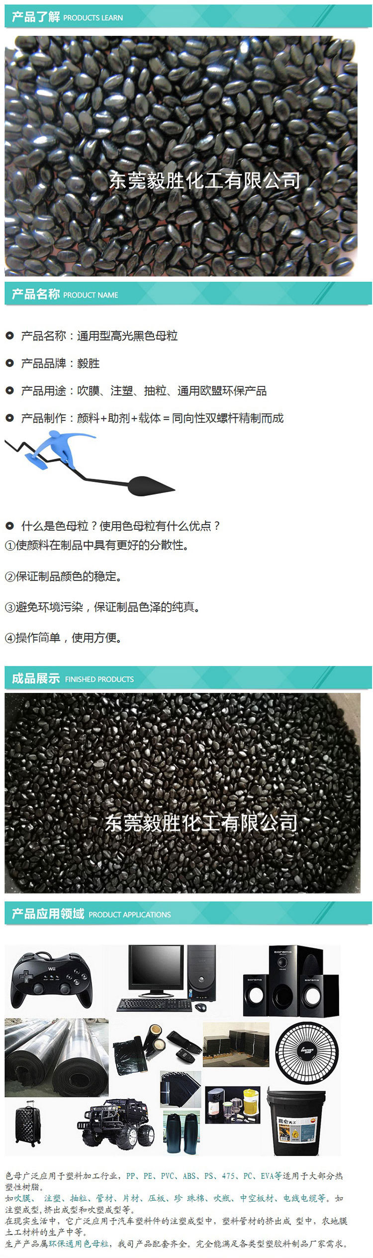 d:1:20,用于高级塑料制品,包括聚烯烃、ABS,并广泛用于注塑、吹塑、纺丝等