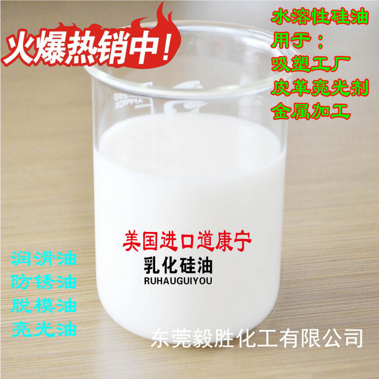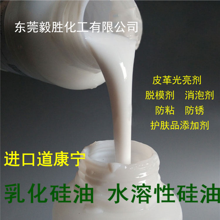 水溶性乳化脱模硅油是以硅油为主要原料,经科学的配方和合理的工艺配制而成的水溶性的硅乳液,其可用于皮革光亮剂、汽车、家具、地板、金属加工、聚氨脂、塑料、橡胶、玻璃、陶瓷、石材、纺织、造纸、木材等行业的脱模、上光、防粘、防锈和防水。