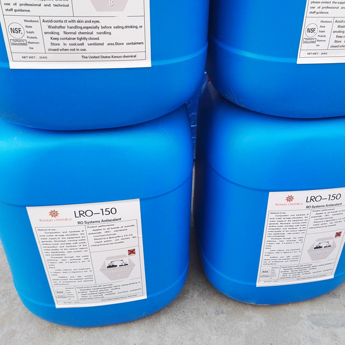 kenuo LRO-150阻垢剂是具有能分散水中的难溶性无机盐、阻止或干扰难溶性无机盐在金属表面的沉淀、结垢功能,并维持金属设备有良好的传热效果的一类药剂。冷换设备防腐阻垢剂以环氧树脂和特定氨基树脂为基料,加入适量的各种防锈、防腐等各种助剂配制而成,为单组分。它具有优异的屏蔽、抗渗、防锈性能、良好的阻垢、导热性,优良的耐弱酸、强碱、有机溶剂等性能,它的附着力强,且膜层光亮、柔韧、致密、坚硬。
