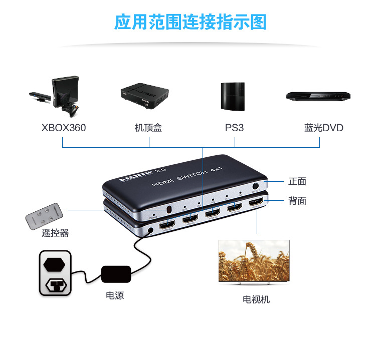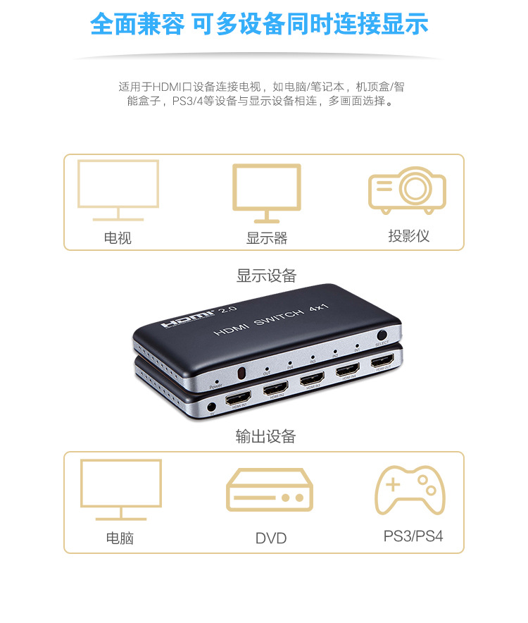 多路高清输入信号源 比如DVD、高清播放器,PS4,机顶盒
