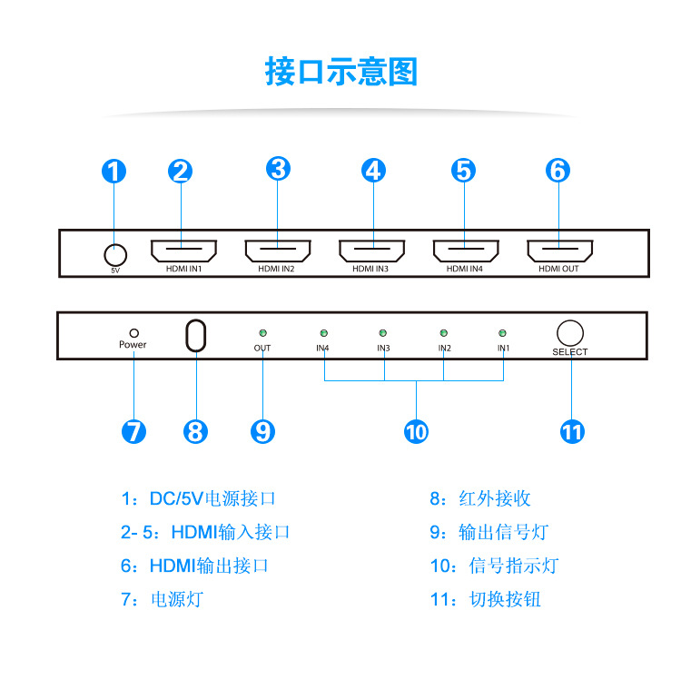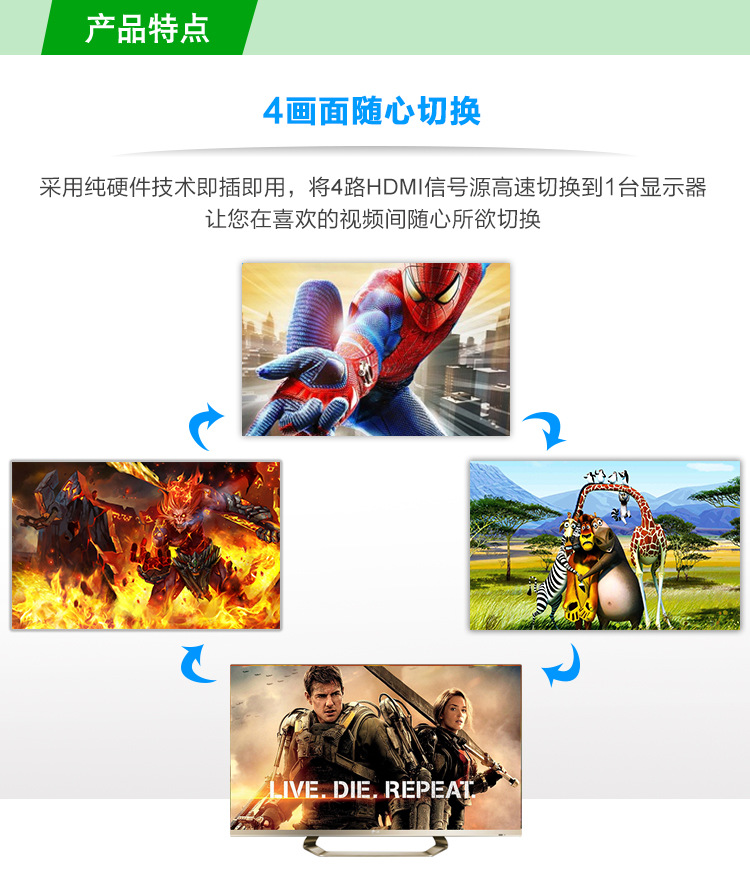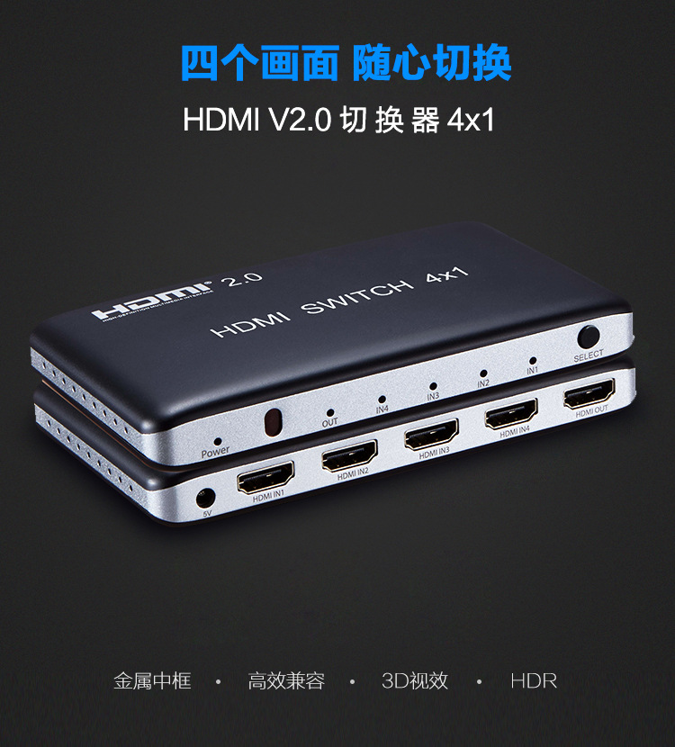 支持自动切换HDMI输入口(4个端口中,优先最后一个插入口)