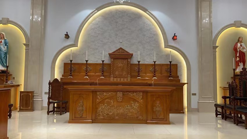 jiangxi huajiu qing science and technology service co., ltd. produces and sells religious furniture such as church pews, worship chairs, prayer chairs, altars, reading tables, ark of the covenant, ure cabinets, communion tables, pastor chairs, offering boxes, offering boxes, safes, podiums, etc., as well as handicrafts and ceremonial goods, domestic trade agency, import and export of goods, protection of intangible cultural heritage, etc. we welcome friends and family from home and abroad to visit and negotiate in our factory. welcome to china! huajiu qing welcomes you!